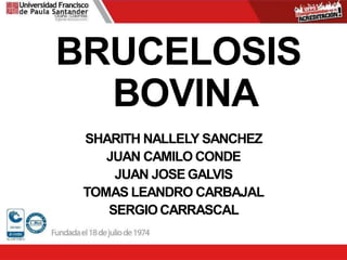 Este documento trata sobre la brucelosis bovina. Explica que es una enfermedad infecciosa causada por la bacteria Brucella abortus que afecta principalmente al ganado bovino y causa abortos e infertilidad. Describe los síntomas, formas de transmisión, pruebas de diagnóstico, tratamiento, importancia económica y medidas de control y prevención de la enfermedad.