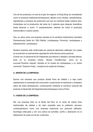 2. La empresa se ha convertido en líder en la venta de dulces tradicionales del norte del Perú. Su producto principal es el King Kong de Lambayeque.
