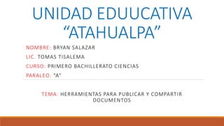 Este documento resume varias herramientas en línea gratuitas para publicar y compartir documentos, incluidas presentaciones de PowerPoint. Algunas de las herramientas destacadas son SlideShare, Slidesix, Google Presentation y SlideServe, que permiten cargar presentaciones en formatos como PPT y PPTX para compartir públicamente con enlaces o código de inserción. La mayoría conservan las transiciones y animaciones, pero no admiten funciones avanzadas como pistas de audio o planes premium.