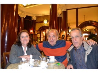 El documento resume una serie de eventos sociales y encuentros con amigos y familiares que tuvieron lugar en julio de 2013 en Buenos Aires y sus alrededores. Se mencionan visitas a restaurantes locales, cenas y reuniones en casas de amigos, así como recuerdos y fotos compartidas de momentos pasados.