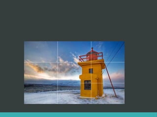 El documento habla sobre diferentes tipos de cámaras digitales como las point and shoot, DSLR y cámaras de celulares. Explica las características de cada una, incluyendo controles manuales, tamaño, resolución y rendimiento en condiciones de poca luz. También cubre temas de composición fotográfica como la regla de los tercios, balance, líneas guiadoras, simetría, punto de vista y contexto. Por último, da recomendaciones sobre herramientas de edición y diseño de slideshows con