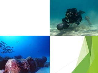 El documento describe la historia del esfuerzo humano por explorar y conquistar las profundidades del océano. Los primeros intentos de buceo fracasaron debido a la falta de equipo para respirar bajo el agua y la baja visibilidad. Con el tiempo, las personas desarrollaron cascos, tubos de respiración y lastre para permitir el buceo autónomo a profundidades más grandes. Hoy en día, el buceo deportivo se basa en la relajación mental, la alimentación y la capacitación para soportar la hipoxia