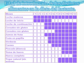 El documento describe la importancia de una buena alimentación infantil para el desarrollo físico e intelectual de los niños. Explica que una nutrición equilibrada durante los primeros años puede tener efectos positivos a largo plazo en la salud, habilidades de aprendizaje y rendimiento escolar. Además, detalla los diferentes grupos de alimentos recomendados en la dieta infantil y los factores que pueden influir en la alimentación de los niños.