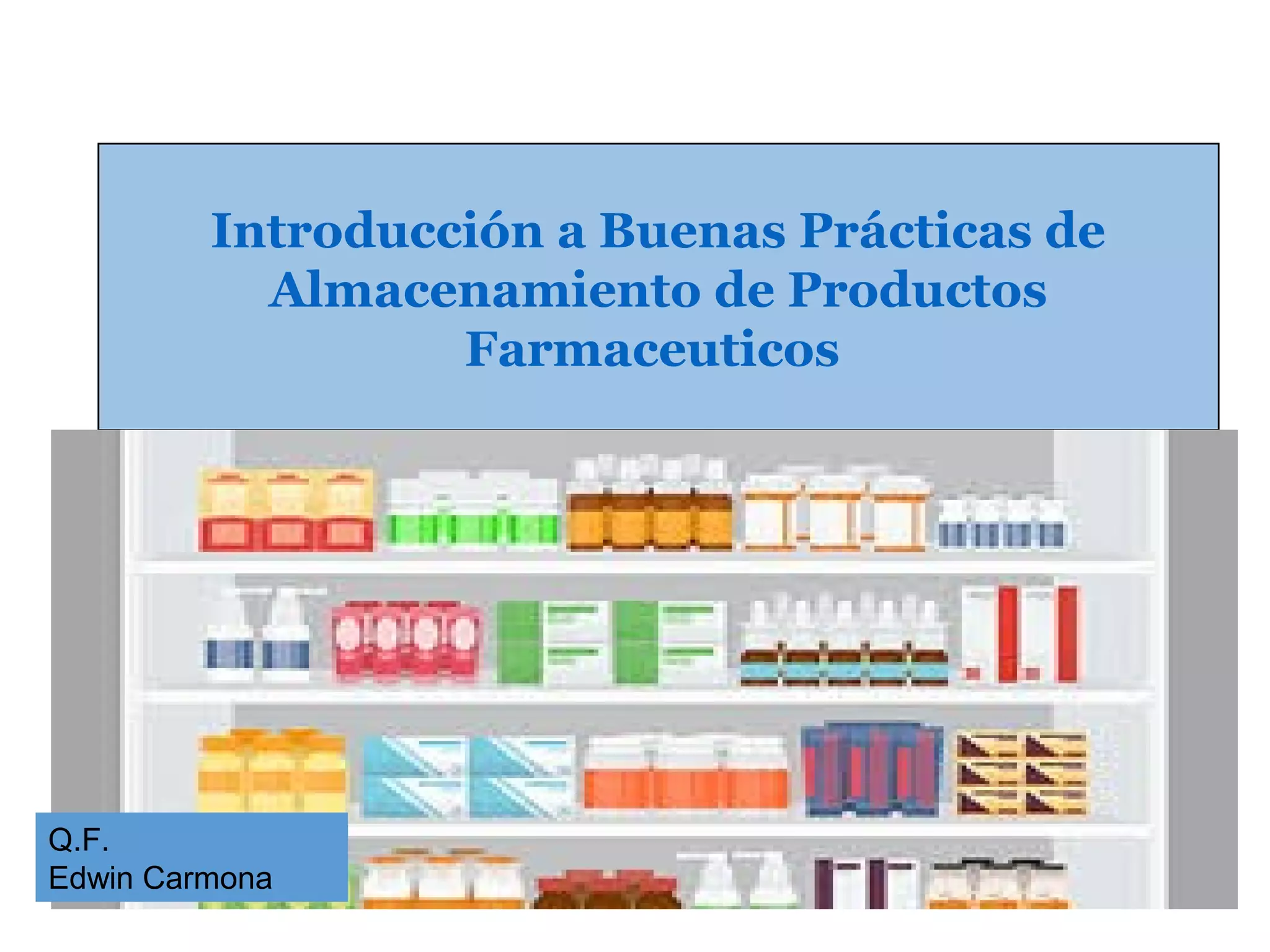 Este documento proporciona información sobre buenas prácticas de almacenamiento de productos farmacéuticos. Explica que las áreas de almacenamiento deben mantener la temperatura adecuada para cada producto y que los edificios e instalaciones deben ser de tamaño adecuado y diseñados para controlar las condiciones ambientales. Además, el personal debe estar capacitado y calificado para realizar las actividades de almacenamiento de manera segura y ordenada.