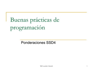Este documento presenta varias buenas prácticas de programación como declarar correctamente las variables, indentar y comentar el código, asignar la propiedad target en los controles, dar acceso rápido a los botones, centrar la forma al cargarla, usar nombres de objetos con prefijos coherentes y ofrece convenciones recomendadas para objetos en Visual Basic.
