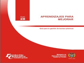 El documento describe cómo las organizaciones pueden mejorar aprendiendo de las buenas prácticas de otras organizaciones. Define una buena práctica como una experiencia que resolvió un problema o necesidad social de manera novedosa e involucrando a múltiples partes interesadas, con resultados comprobables y sostenibles que pueden ser replicados por otras. También explica que el benchmarking es el proceso de identificar sistemáticamente buenas prácticas de otras entidades para comparar, adaptar y apropiar en la propia organización.