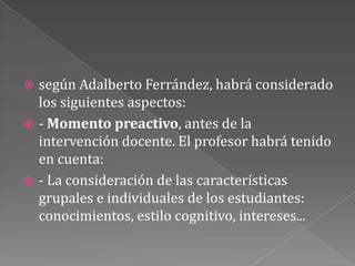 El resumen describe las buenas prácticas docentes según dos autores. Estas incluyen considerar las características de los estudiantes antes de dar la lección, interactuar flexiblemente durante la lección según las circunstancias, y reflexionar después para mejorar. También propone una variedad de actividades de aprendizaje que consideran la diversidad de los estudiantes y maximizan su autonomía.