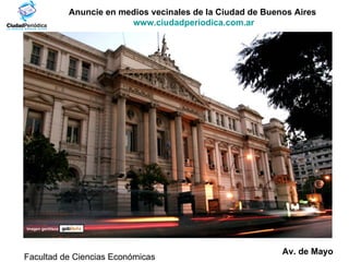 El documento repite varias veces un anuncio para anunciar en medios vecinales de la Ciudad de Buenos Aires en el sitio www.ciudadperiodica.com.ar, e incluye imágenes de la Avenida de Mayo y lugares como el Congreso y el Café Tortoni.