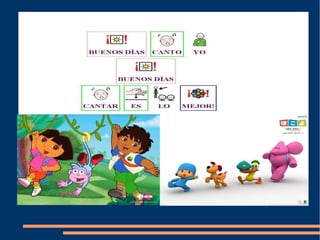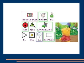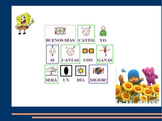 Este documento presenta información sobre pictogramas ARASAAC, un conjunto de pictogramas creados por Sergio Palao para facilitar la comunicación de personas con discapacidades. Se indica que los pictogramas tienen una licencia CC (BY-NC-SA) ARASAAC y que fueron montados en un blog y usando imágenes de Google.