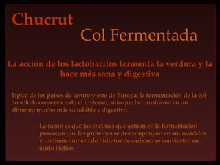 Este documento proporciona información sobre varios temas relacionados con la alimentación saludable, incluyendo los beneficios del chucrut fermentado, cómo hacer mahonesa sin aceite, recetas para conservar tomates y aromatizar quesos frescos. También discute los valores nutricionales de alimentos como la alfalfa germinada, las nueces de macadamia y el mijo.