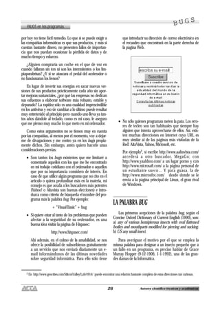 Este documento discute los errores (bugs) que ocurren en los programas de computadora. Explica que aunque a veces es tentador echarle la culpa a la máquina por los errores, en realidad la mayoría de los bugs son causados por errores humanos en el diseño y desarrollo del software. También menciona que los programas comerciales modernos son muy complejos y creados por equipos, lo que aumenta la posibilidad de errores.