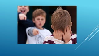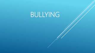 Este documento trata sobre el bullying y ciberbullying. Define el bullying como el maltrato repetido de un individuo hacia otro con el objetivo de causar daño. Explica que el ciberbullying es una forma de acoso a través de la tecnología que puede ser difícil de detectar pero igual de dañino. Proporciona consejos para las víctimas de ciberbullying como pedir ayuda, guardar pruebas y tomar medidas legales si el acoso continúa.