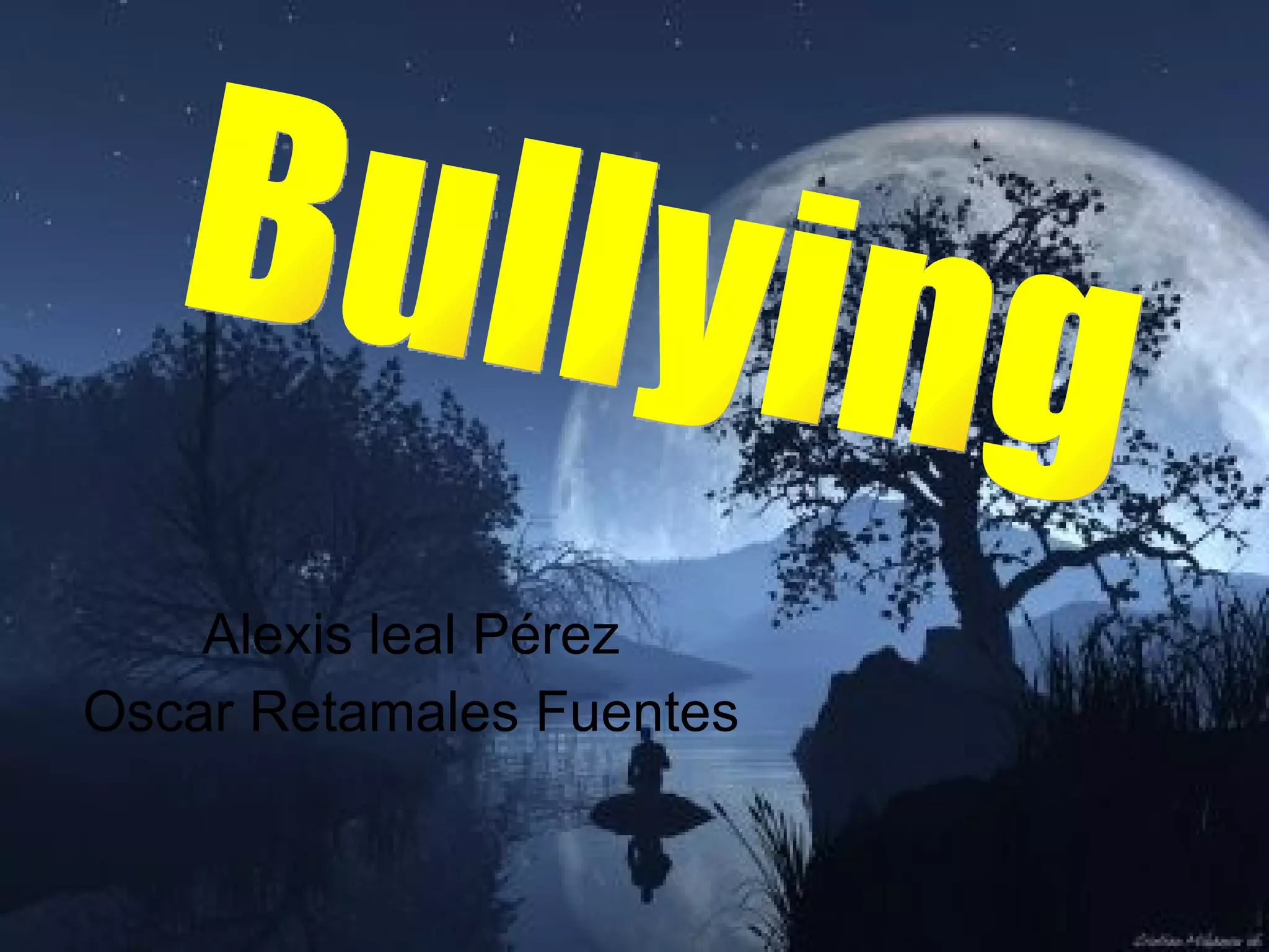 El documento habla sobre el bullying o acoso escolar. Define el bullying como maltrato psicológico, verbal o físico entre estudiantes de forma repetida. Menciona que la violencia emocional es la forma dominante y ocurre principalmente en el aula y patio. También señala que el rol de los padres puede reforzar el bullying si le dan consejos inadecuados a sus hijos y que los efectos en las víctimas incluyen baja autoestima, problemas emocionales y depresión.