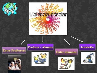 Este documento trata sobre la violencia escolar y el bullying. Describe las dinámicas entre agresores, víctimas y testigos. Explica que el bullying implica un maltrato repetido y deliberado de una persona con menos poder hacia otra. Identifica algunos síntomas comunes en víctimas como inseguridad, ansiedad y baja autoestima. También analiza las características de los agresores y las consecuencias negativas del bullying para todos los involucrados.