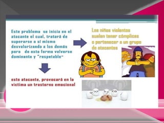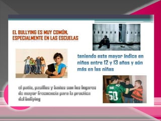 Este documento describe un taller escolar sobre la prevención del bullying que se llevó a cabo en el Liceo Bolivariano Obelisco II en Barquisimeto, Venezuela. El taller se dirigió a estudiantes y tuvo como objetivo sensibilizarlos sobre el bullying y enseñarles sobre su detección y prevención. El taller consistió en dos sesiones, la primera sobre el concepto de bullying y la segunda sobre seguridad pública y formas de detección del bullying. Cada sesión incluyó presentaciones, discusión de ejemplos y conclusiones.