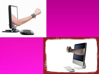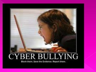 El documento discute las diferencias entre el acoso tradicional en la escuela y el acoso cibernético. Mientras que casi todos los jóvenes acosados en línea también lo son en persona, el acoso cibernético permite el anonimato del acosador y la publicación permanente de contenido dañino con una audiencia global. Los datos muestran que el 32% de los adolescentes en línea han experimentado acoso cibernético como el envío no autorizado de material o mensajes amenazantes. El acoso tradicional suele ser cometido diariamente