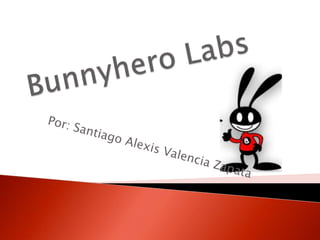 El documento describe los pasos para crear una mascota virtual en el sitio http://bunnyherolabs.com, incluyendo buscar el menú "Cyber-pets", seleccionar un tipo de mascota, personalizarla con un color, nombre y dueño en el editor, y luego copiar el código generado para insertarlo en una página web.