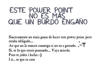 El estudiante no tenía ganas de hacer la presentación de PowerPoint que estaba obligado a completar. Reconoce que la presentación es un desorden y no es de calidad, pero pregunta si algo en el mundo actual no es caótico.