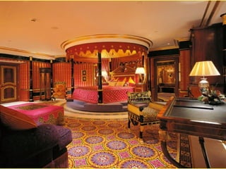 El Burj Al Arab es el único hotel de 7 estrellas en el mundo ubicado en Dubai. Costó aproximadamente 65 millones de euros y abrió sus puertas en diciembre de 1999. Las tarifas por noche varían entre 669 y 6240 dólares.