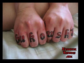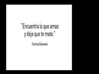 Este documento contiene varias citas atribuidas al escritor estadounidense Charles Bukowski que resaltan las diferencias entre un artista e intelectual. Bukowski defendía que un escritor debe dedicarse plenamente a la creación y no buscar un "trabajo decente". También mostraba desdén por los críticos literarios y prefería las relaciones casuales con prostitutas antes que con mujeres buenas que podrían pedirle su alma. En general, las citas reflejan la visión pesimista y cínica de Bukowski sobre las
