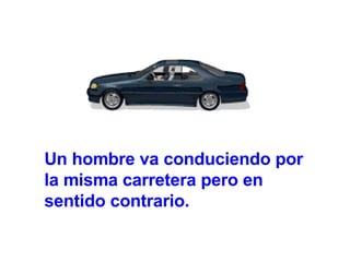 Una mujer le grita "burro" a un hombre que va en sentido contrario por la carretera. El hombre le responde "puta" y se siente satisfecho, pero al tomar la primera curva se da cuenta de que llevaba la razón. La moraleja es que los hombres no entienden lo que quieren decir las mujeres.