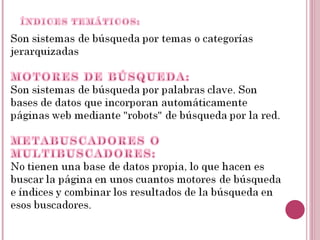Este documento describe brevemente los operadores lógicos AND, OR y NOT que se usan en los motores de búsqueda de Internet, así como el uso de comillas y asteriscos para realizar búsquedas más precisas. Explica que AND requiere que ambos términos estén presentes, OR devuelve resultados que contengan cualquiera de los términos, y NOT excluye los resultados que contengan ese término. También cubre el uso de signos + y - como operadores AND y NOT implícitos respectivamente.