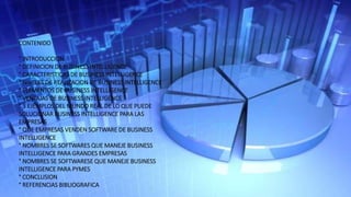 Business intelligence (BI) es una estrategia que permite a las empresas incrementar su rendimiento y competitividad mediante la organización inteligente de sus datos históricos. BI ofrece diferentes niveles de análisis desde consultas simples hasta sistemas expertos, y proporciona ventajas como obtener información más rápido y centralizada para tomar mejores decisiones. Software como Tableau, Qlik y Microsoft Power BI son utilizados por grandes y pequeñas empresas para implementar soluciones de BI.