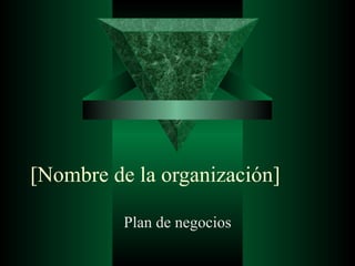 Este documento presenta un plan de negocios para una organización. Resume los objetivos a largo plazo de la organización, el equipo directivo clave y su experiencia, y analiza el mercado actual y futuro. También describe las oportunidades del mercado, la estrategia y ventajas competitivas del negocio, así como los objetivos y metas financieras a 5 años. Finalmente, detalla los requisitos de recursos, riesgos y asuntos clave a corto y largo plazo para el éxito del negocio.