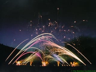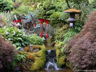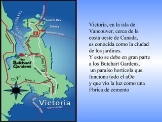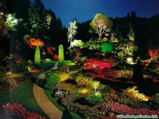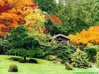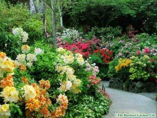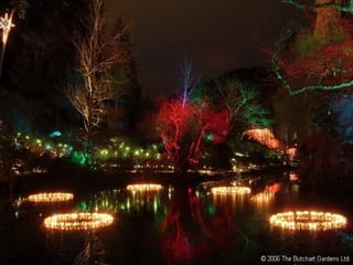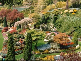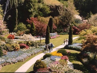 Los Butchart Gardens en Victoria, Canadá comenzaron como una cantera abandonada que Jennie Butchart convirtió en un paraíso hortícola a comienzos del siglo XX. Actualmente es uno de los destinos florales más famosos del mundo, atrayendo a más de un millón de visitantes anuales a sus 55 acres con una amplia variedad de flores y plantas. Los meses de verano ofrecen fuegos artificiales los sábados por la noche, y en Navidad las luces iluminan los jardines.