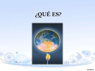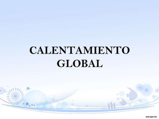 Este documento describe el calentamiento global y sus causas. Explica que la Tierra se ha calentado 0.75°C desde 1850 debido a los gases de efecto invernadero liberados por las actividades humanas como la quema de combustibles fósiles. Los principales gases de efecto invernadero son el dióxido de carbono, el metano y el óxido nitroso, siendo Estados Unidos y China los mayores emisores. El documento también advierte que la temperatura podría aumentar hasta 5.8°C para 2100 a menos que se adopten energías alternativas