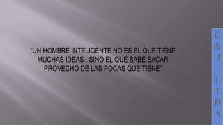 C&J Ltda es una empresa colombiana que ofrece servicios de análisis, diseño y programación de sistemas de información. Su misión es satisfacer las necesidades de sus clientes de manera responsable, honesta y personalizada. Ofrecen servicios de sistemas para procesos contables e informáticos como presupuestos, nóminas, tesorería, inventarios, contabilidad general e impuestos. Su análisis de sistemas evalúa la situación actual de una organización para implementar mejoras.