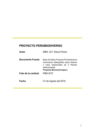 Este documento describe el uso histórico del camu camu (Myrciaria dubia) en Perú. Explica que los conocimientos tradicionales de los pueblos indígenas sobre el camu camu se han transmitido de generación en generación y se basan en la relación entre las comunidades y su entorno natural. También destaca que el camu camu ha sido una importante fuente de alimento y nutrición para las poblaciones locales amazónicas. Finalmente, señala que fortalecer los sistemas productivos tradicionales basados en cult