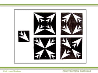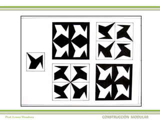 El documento explica qué es un módulo y cómo se pueden crear estructuras modulares. Un módulo es una unidad básica que se repite para formar una estructura. Los módulos pueden ser formas geométricas o orgánicas y pueden combinarse de diferentes maneras como por tamaño, rotación, simetría u otras formas. Las estructuras modulares pueden ser simples, formadas por la repetición de una sola figura, o complejas, formadas por varias figuras geométricas yuxtapuestas o
