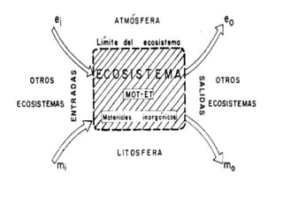 Este documento introduce los conceptos de biocenosis y ecosistema. Explica que un ecosistema se compone de un biotopo y una biocenosis. También discute los conceptos de nicho ecológico, competencia y depredación. Finalmente, propone un juego de 50 minutos en el que los equipos deben investigar las relaciones tróficas de una especie y construir su red trófica, identificando las interacciones existentes.