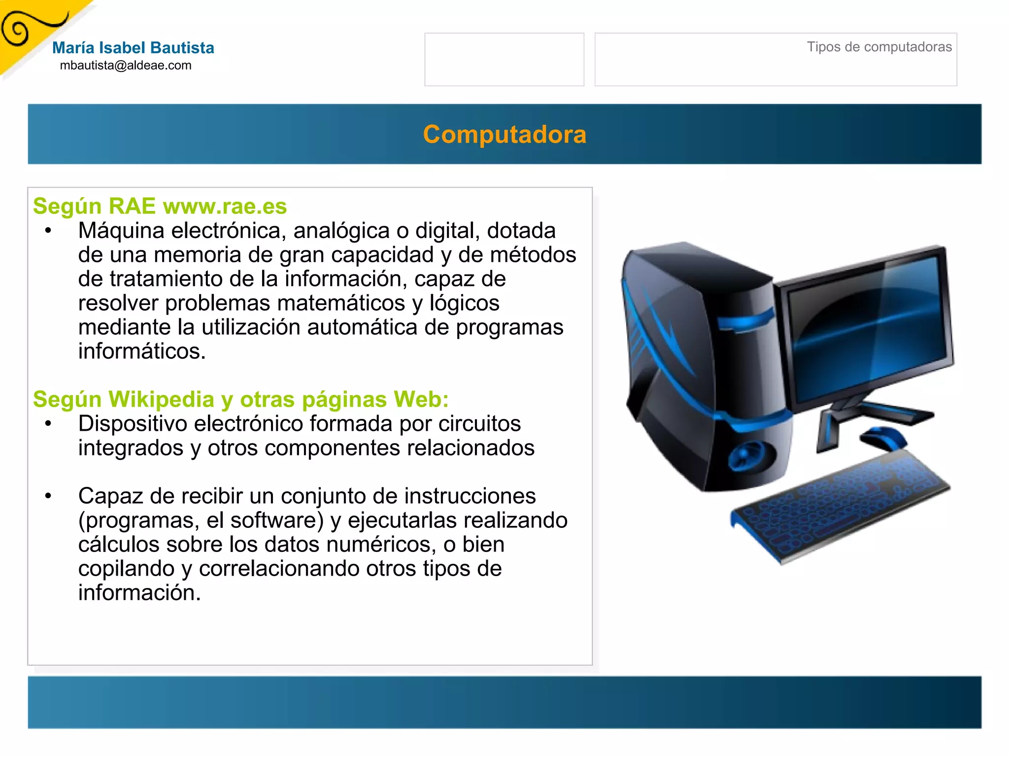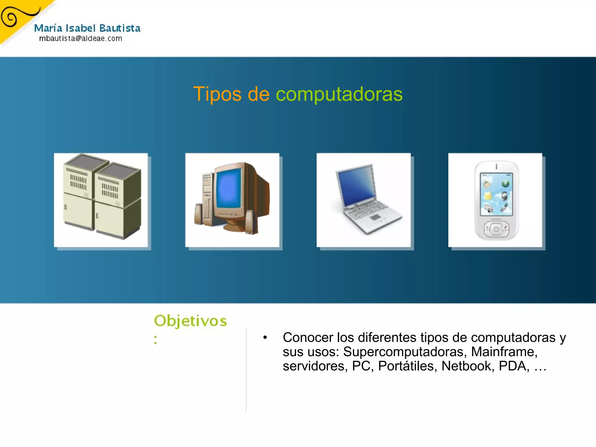 El documento clasifica varios tipos de computadoras, incluyendo supercomputadoras, mainframes, servidores, PCs, portátiles, netbooks y PDAs, describiendo sus características y usos específicos. Se destacan las capacidades de procesamiento y almacenamiento de las supercomputadoras y mainframes, así como la portabilidad y economía de los dispositivos móviles como las netbooks y PDAs. También se menciona la evolución de las computadoras personales desde su introducción en 1981 con el IBM 5150.