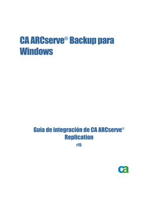 Este documento describe la integración entre CA ARCserve Backup y CA ARCserve Replication. La integración combina las funciones de replicación continua de datos de CA ARCserve Replication con las copias de seguridad periódicas de CA ARCserve Backup para proporcionar protección continua de datos y copias de seguridad. El documento explica cómo funcionan los procesos integrados de copia de seguridad y restauración, así como las configuraciones e instalación de los productos.