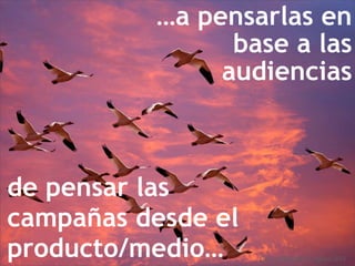 El documento propone una nueva perspectiva sobre la planificación de la publicidad digital, sugiriendo que se debe centrar más en las audiencias y consumidores en lugar de en los productos y medios tradicionales. Se enfatiza la necesidad de aprovechar la inteligencia de la web para mejorar la efectividad de las campañas, buscando optimizar la frecuencia y el tipo de mensajes mostrados. También se plantean preguntas clave para una mejor planificación en el entorno digital.