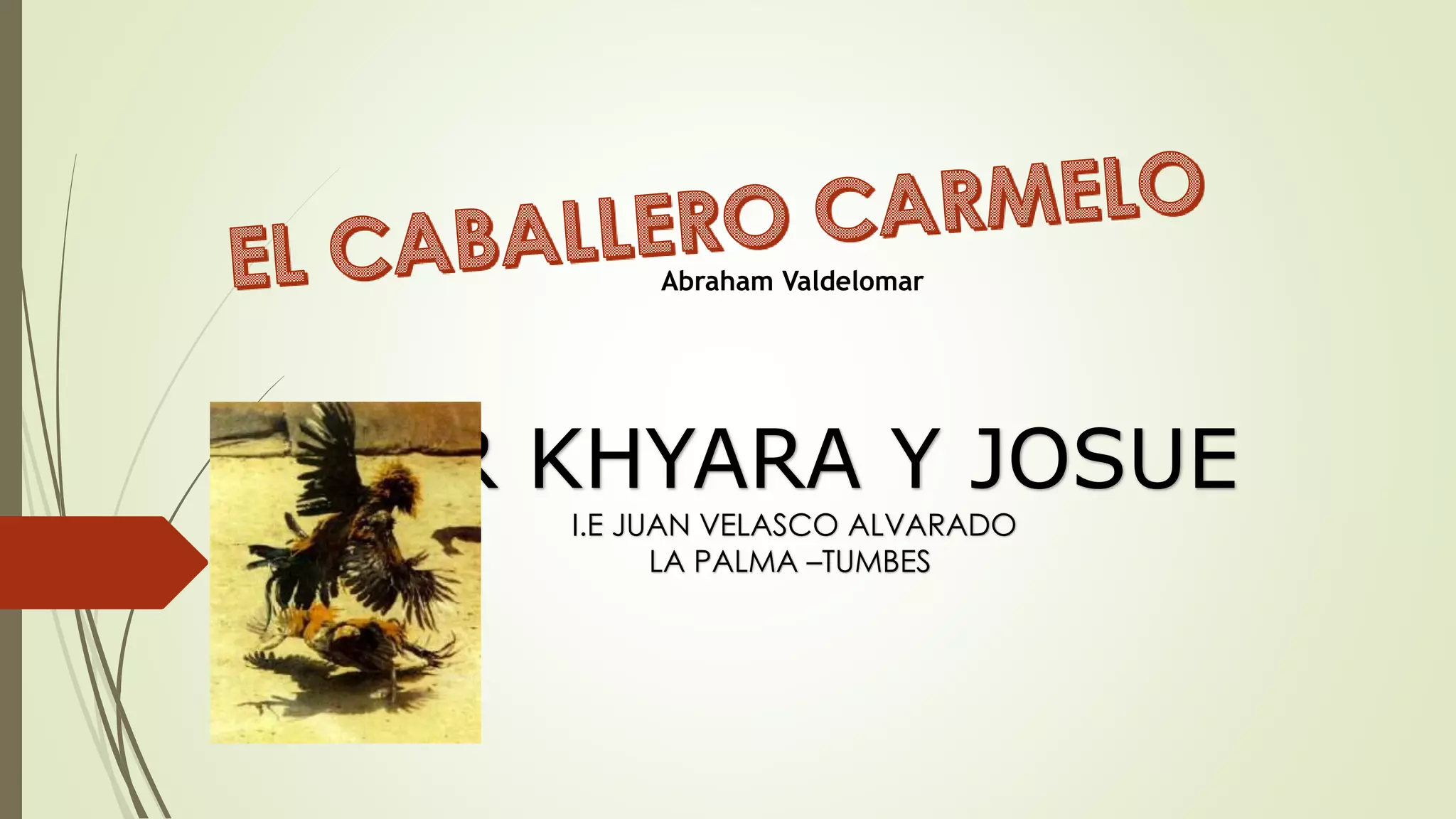 El hermano mayor Roberto regresa a casa después de un viaje y trae muchos regalos, incluyendo un hermoso gallo de pelea llamado Carmelo. Tres años después, el padre de Roberto acepta un desafío entre Carmelo y otro gallo famoso llamado Ajiseco. A pesar de estar envejecido, Carmelo lucha valientemente pero comienza perdiendo. Sin embargo, en un último esfuerzo épico, Carmelo derrota a Ajiseco antes de morir agotado dos días después, dejando a la familia y el valle