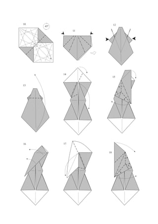 El documento presenta un diagrama con instrucciones para realizar una rutina de ejercicios a caballo. El diagrama contiene 45 pasos numerados que guían los movimientos del caballo, incluyendo giros, cambios de dirección y movimientos simultáneos delanteros y traseros.