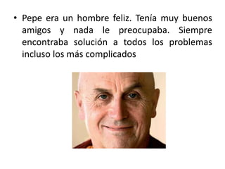 Pepe perdió su cabello con el tiempo y probó muchos remedios sin éxito para recuperarlo. Finalmente, tuvo la idea de poner abono en su cabeza y le creció una mata de hierba, lo que le devolvió su buen humor. Otros vecinos empezaron a imitarlo cultivando todo tipo de plantas en sus cabezas.