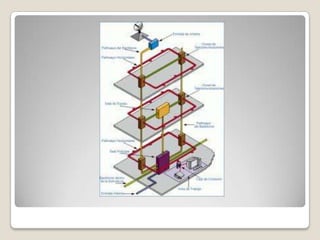 El documento describe los componentes principales de un sistema de cableado estructurado, incluyendo el área de trabajo, el cuarto de telecomunicaciones, el cableado horizontal y vertical, y el cuarto de equipos. Explica que el cableado estructurado organiza el sistema de cableado para que sea fácil de entender e instalar y permite integrar servicios como voz, datos y video.
