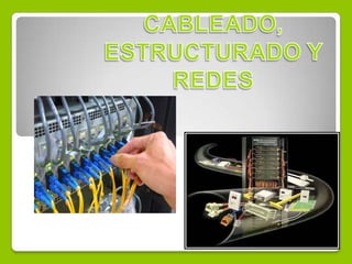 El documento describe el cableado estructurado y las redes, que permiten interconectar equipos en diferentes edificios para integrar servicios como datos, telefonía y control mediante el tendido de cables. El objetivo principal es cubrir las necesidades de los usuarios durante la vida útil del edificio sin necesidad de realizar más tendido de cables. El cableado estructurado incluye cableado de campo, cableado vertical y cableado horizontal, así como componentes como conectores y parchadas. La normatividad incluye estándares ANSI/TIA/EIA.