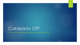 El documento explica cómo construir un cable cruzado UTP para conectar dos ordenadores en una red local. Primero se debe pelar el aislamiento exterior del cable UTP para exponer los cuatro pares de cables trenzados. Luego se colocan los cables en los carriles correctos del conector RJ-45 y se inserta el conector en la herramienta de crimpado para fijarlo. El mismo proceso se repite en el otro extremo del cable. Finalmente, se prueba la conexión con un tester para verificar que los pares de cables estén correctamente empare