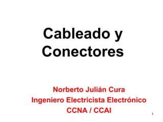 Este documento presenta información sobre diferentes tipos de cables y conectores utilizados en redes de computadoras. Brevemente describe cables coaxiales, pares trenzados y fibra óptica, así como sus respectivos conectores. También cubre conceptos como impedancia característica y atenuación.