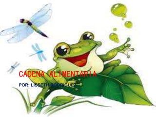 La cadena alimentaria consiste en una serie de organismos vivos relacionados donde cada uno consume al anterior. Los productores como plantas y algas convierten la energía del sol en alimento, los consumidores como el zooplancton y los depredadores se alimentan directa o indirectamente de los productores, y los descomponedores como hongos y bacterias descomponen la materia muerta.