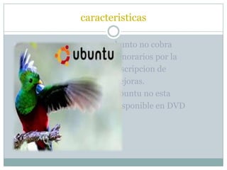 Ubuntu es un sistema operativo de código abierto gratuito que ofrece seguridad y facilidad de uso, aunque no está disponible en DVD y no cobra suscripciones por actualizaciones.