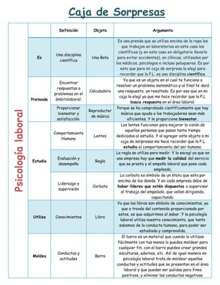 La psicología laboral estudia el comportamiento humano en el ámbito laboral utilizando el conocimiento adquirido a través de libros y buscando respuestas a problemas mediante el uso de una calculadora, con el fin de proporcionar bienestar y satisfacción a los trabajadores. También se enfoca en evaluar el desempeño y liderazgo en el lugar de trabajo, así como moldear conductas y actitudes mediante el entendimiento del ser humano de manera similar a cómo se puede moldear barro.