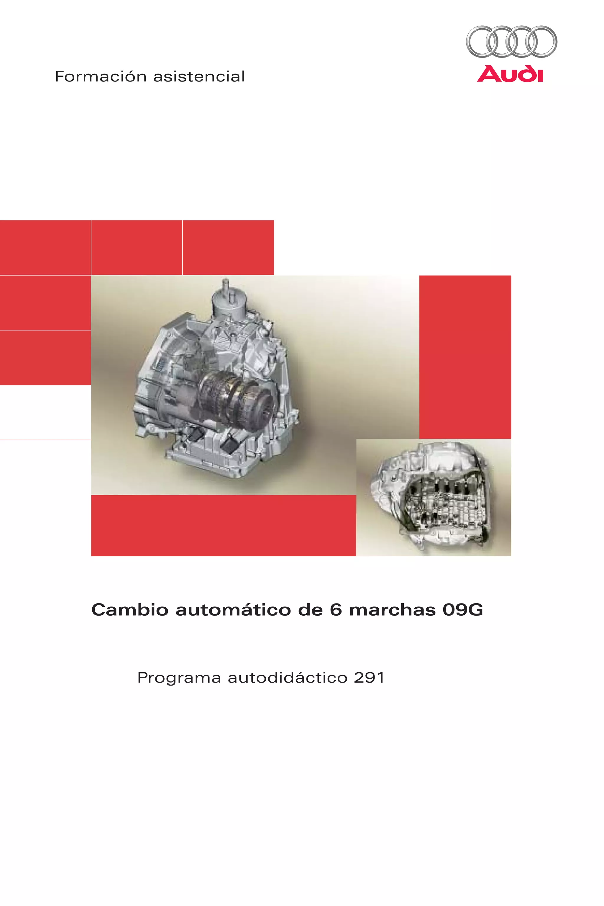 El documento proporciona una descripción técnica general del cambio automático de 6 marchas 09G utilizado en los vehículos Audi A3 2004 y Audi TT. El cambio 09G ofrece 6 relaciones de transmisión y una relación total de 6,05, superando a otros cambios automáticos para montaje delantero-transversal. Usa un engranaje planetario compacto con solo 5 elementos de mando basado en el diseño de Lepelletier. Esto reduce el peso del cambio a solo 82,5 kg a pesar de la adición de una sexta march