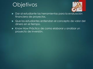 Este documento presenta conceptos clave sobre flujo de caja y análisis financiero de proyectos. Explica los objetivos del flujo de caja, la diferencia entre costos e ingresos, y conceptos como costos fijos, variables, punto de equilibrio y escala relevante. También cubre temas como estados financieros, tasas de interés, valor del dinero en el tiempo y metodologías para la evaluación y construcción de flujos de caja.