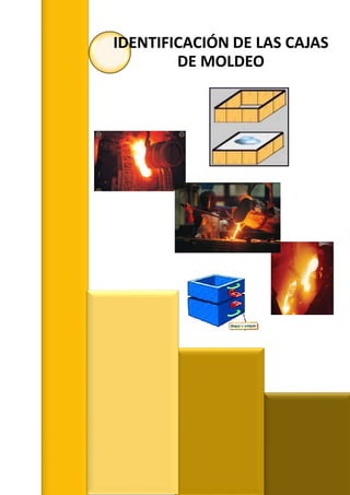 El documento detalla la identificación y características de las cajas de moldeo utilizadas en procesos de fundición en la ingeniería metalúrgica. Explica los diferentes tipos de moldeo, los materiales de las cajas, y proporciona un marco teórico sobre la construcción y diseño de estas. Además, se presentan objetivos, procedimientos y recomendaciones para su uso eficiente en el laboratorio.